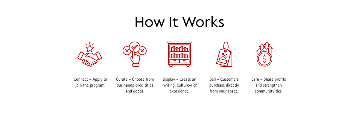 Celebrate and amplify Black culture and storytelling while differentiating your offerings with unique, curated products from a local small business. Partnering with Red Rice Books also helps drive customer traffic and engagement through meaningful cultural collaboration.